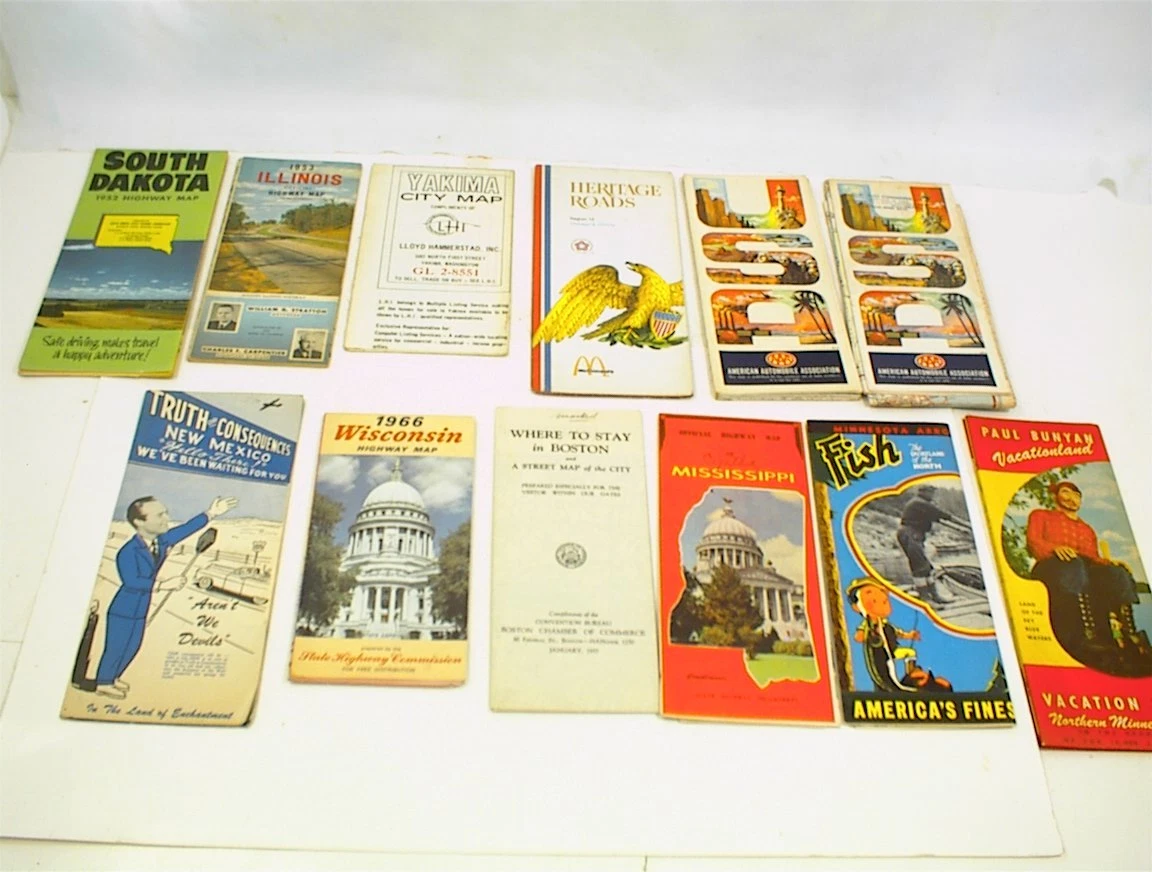 12 MISC. Vintage MAPS HIGHWAY ROAD NEW MEXICO WISCONSIN BOSTON