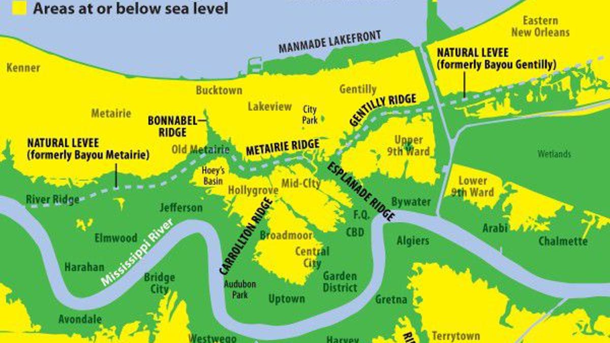 Infographic of New Orleans ground elevations. : r/NewOrleans